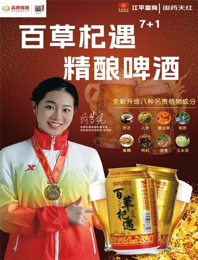 国药天红百草杞遇7+1精酿啤酒添加了灵芝、北冬虫夏草、人参、黄精、菊苣、枸杞、茯苓、玉米须,经特殊保密工艺酿制而成,是一款补充人体微量元素、提升精力的健康养生啤酒,更被国人定义为啤酒中的“茅台”,是公司响应“健康中国”战略的力作。百草杞遇7+1精酿啤酒由国药集团30多组研发团队的2万多名工作人员,历经了8年的研发,是一款更适合国人喝的健康养生啤酒。通过国药天红的科研实力与江平富商的市场洞察,产品实现了传统酿造工艺与现代健康理念的完美结合,成为适合国人体质的健康饮品。
