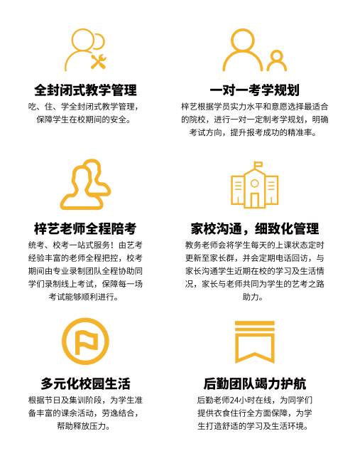 梓艺教育所有校区,均为吃、住、学一体化全封闭式管理模式!毗邻全国各省知名艺术高校,为家长和学生提供更多校区选择,让大家可以足不出省,即可享受北京一线的教学资源和名师指导。
