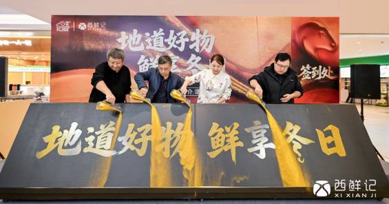 下午三时许,与会嘉宾共同倾泻金沙,“地道好物・鲜享冬日”字样徐徐显现,活动正式启幕。