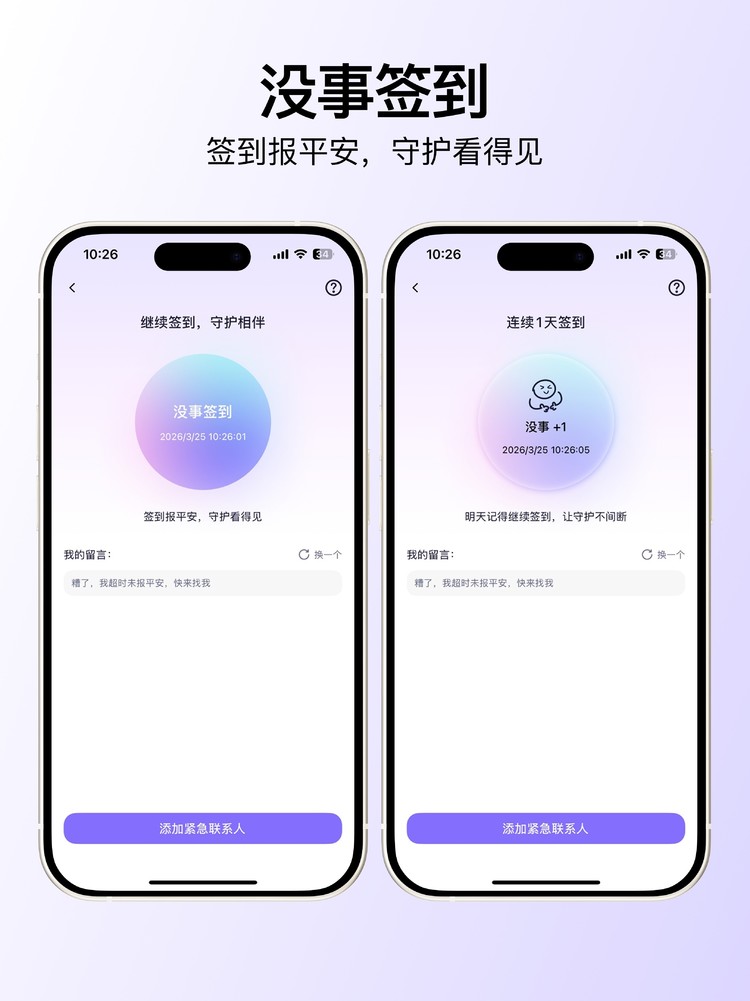 从成熟的全场景安全布局,到 “每日没事签到” 的细节补位,“在这儿 App” 始终以用户需求为核心,用科技为家庭守护赋能。这一新增功能的上线,不仅为亿万独居群体带来更贴近日常的安全保障,更让千万家庭的牵挂有了及时回应,真正实现 “让安全守护看得见”。(图文:在这儿)