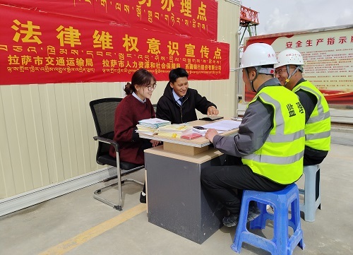 拉萨市交通运输局工程建设管理科副科长唐谱钦介绍:“拉萨市滨河路经开区一段一期工程是拉萨市重点民生项目,五一劳动节即将来临,为进一步保障项目建设者的合法权益,拉萨市交通运输局、拉萨市人社局以及西藏银行特别组织了这一次活动,让项目建设者拥有更多的获得感和幸福感。”