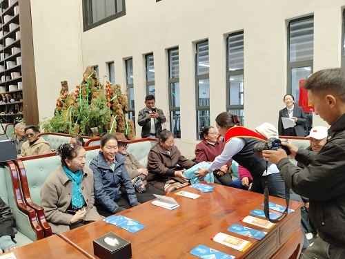 活动现场氛围温馨浓厚,各项服务有序开展。五洲医院医护人员现场开展健康义诊,针对高血压、糖尿病等老年人高发慢性病,细致进行健康检查、科普防治知识、一对一答疑解惑,为老年朋友筑牢健康防线。西藏银行工作人员则以通俗易懂的方式,向老年人细致讲解电信诈骗识别与防范技巧,详细介绍银行适老化存款产品、康养信贷等专属金融服务,手把手帮助老年群体守护好个人“钱袋子”,将便民利民的服务直接送到老年人家门口。