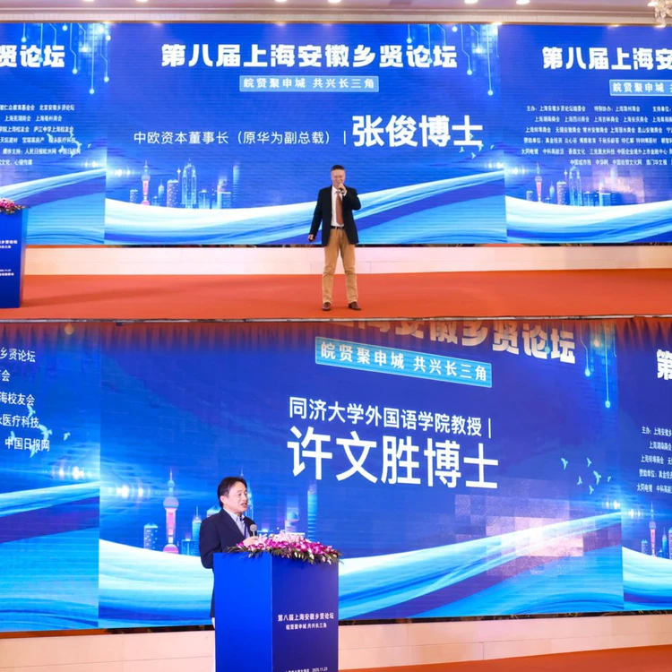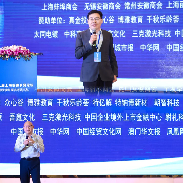 同济大学外国语学院许文胜教授从文化维度出发,依托其深厚的语言学与文化传播研究基础,提出“文化兴产业、回报家乡”的理念,倡导以文化软实力赋能乡村振兴与品牌建设。华东师范大学经济与管理学院杜刚博士则围绕发展目标、人才引进、科研机制与未来路径四个方面,为安徽的治理体系优化与高质量发展规划提供了系统性思路。中欧资本董事长、原华为副总裁张俊博士结合其在科技企业与产业投资领域的丰富经验,深入剖析了当前人工智能、绿色能源、智能制造等领域的投资趋势,为皖籍企业家把握时代机遇提供了前瞻指引。