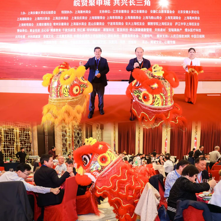 开场即见气势,安徽强龙舞狮团以铿锵鼓点与矫健身姿献上传统舞狮表演,并举行寓意吉祥的“点睛”仪式。金狮跃动,祥瑞盈门,瞬间点燃全场热情,掌声雷动,将浓浓的乡情与美好的祝福传递至每一位乡贤心中。