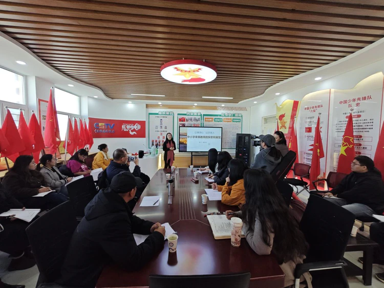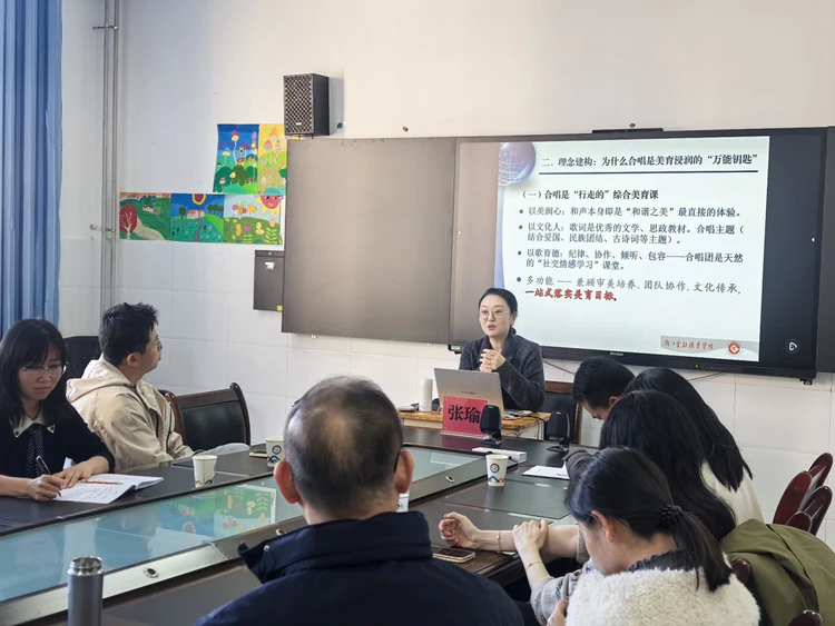 “当地70%的艺术课程由其他学科教师兼任,师资薄弱是核心难题。”有着3年援青经历的林吉一语道破海西州美育困境。基于前期全域调研,团队量身设计了多层次、多维度的教研内容。在专题讲座环节,来自浙江金融职业学院的援青团队融合理论与实践,倾情分享了前沿的美育理念与实用的教学方法。施技文以《以美润心,以艺育人》为题,从育人本质出发,系统阐述了美育融入学生成长全过程的路径和教学设计,并结合AI技术展示了跨学科融合的美术课堂方案。广告艺术教研室主任邱一峰则在《手艺的温度》讲座中,通过现场示范与互动,生动展示了如何将传统工艺转化为富有感染力的课堂内容;张瑜聚焦合唱教学的 “普惠价值”,传授零基础班级的分层教学法,王子慷则拆解节奏训练等实操难点。