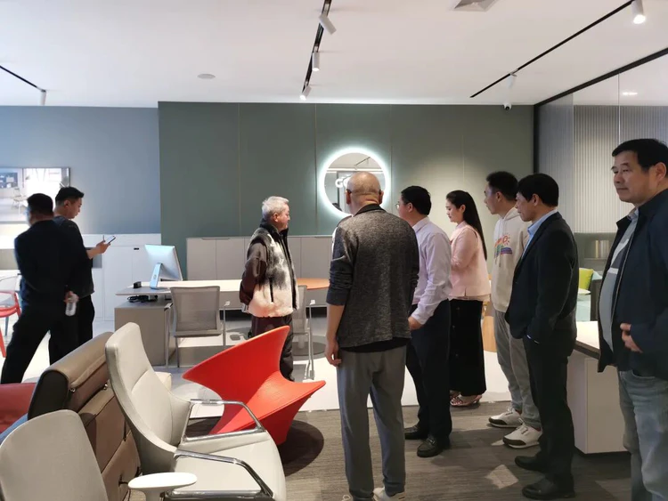 15:00,在朱仁光宗亲的带领下,参与参观工厂的宗亲们有序走进晨烨家具生产车间及产品展示区,开启实地考察之旅。考察过程中,朱仁光宗亲详细介绍了公司的发展历程、生产规模、核心产品及市场布局,重点讲解了办公家具、餐饮家具、酒店家具、展示展览家具的设计理念、生产工艺及质量管控流程。据悉,上海晨烨家具有限公司自成立以来,始终坚守品质初心,凭借专业的设计、优质的产品和贴心的服务,累计服务上千家企事业单位,在行业内树立了良好的口碑与品牌形象,展现出强劲的发展活力。宗亲们认真聆听、仔细观摩,不时驻足询问,对晨烨家具的产品品质、生产实力给予了高度评价。